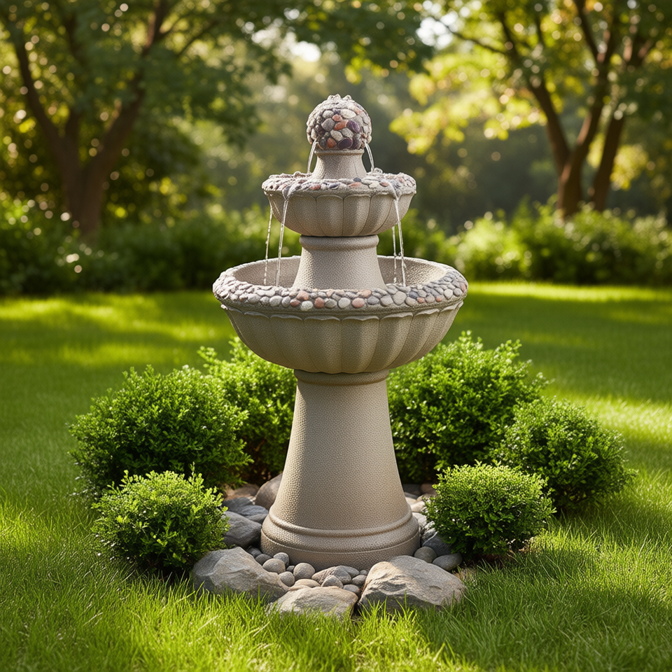 Outdoor Water Fountain 2 Tier Stone 36.5 In Height Elegant Garden Feature
