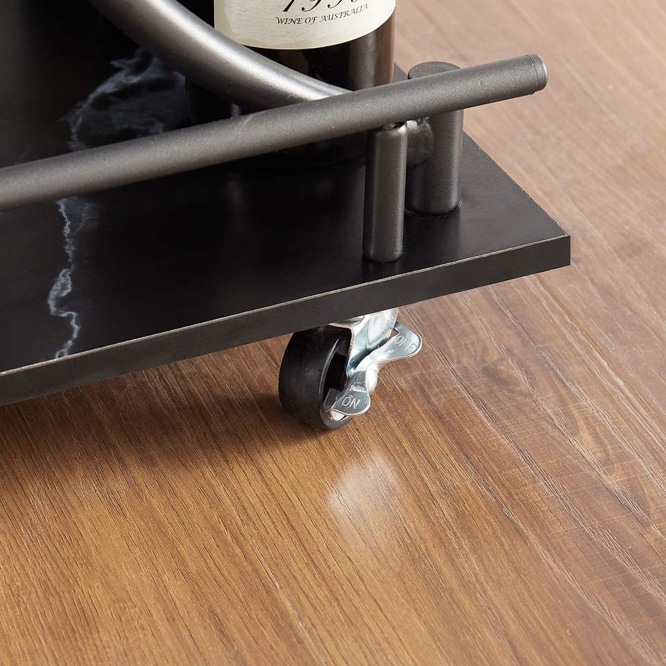 2-Tier Retro Style Black Bar Cart Wine Rack Glass Holder Rolling Drink Trolley Slide Serving Cart for Kitchen Beverage Cart for