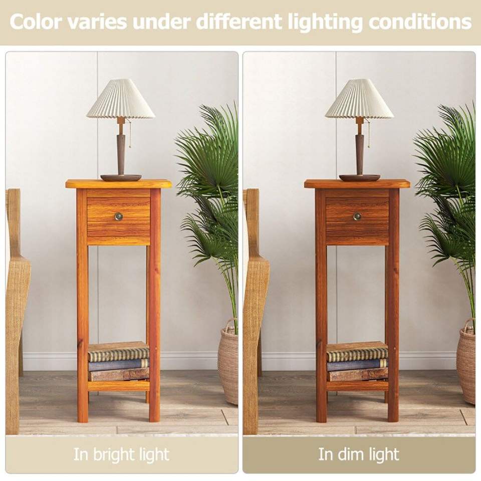 Comodino Sottile a 2 Livelli con Cassetto e Ripiano, Comodini Premium