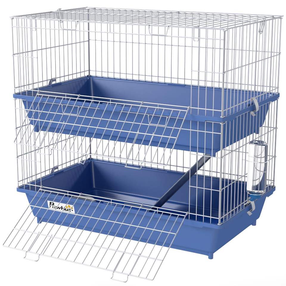 Gabbia a 2 livelli per piccoli animali, per porcellini d'India, furetti, cincillà, con fondo profondo, ciotola interna, borraccia e 2 porte