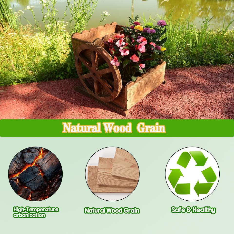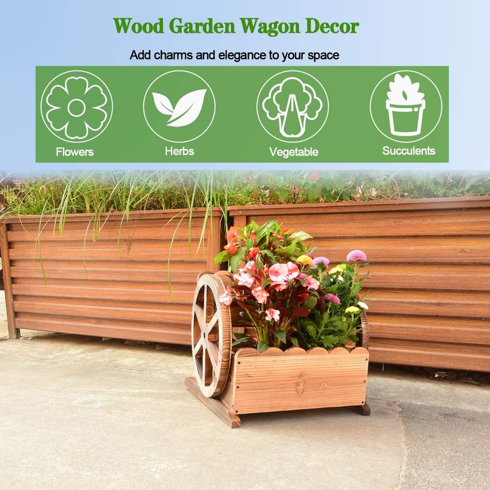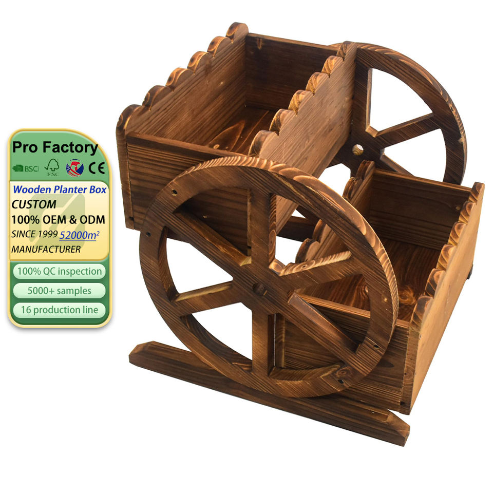 Ruote per fioriera da giardino in legno a 2 livelli carretto decorativo a fiori sopraelevato per balcone Patio con fori di drenaggio per fiori