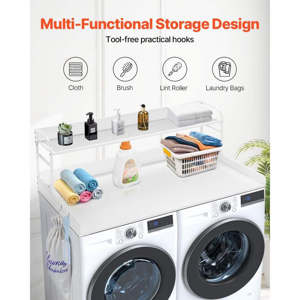 Scaffali a Scala in Legno a 2 Livelli 137 cm x 69 cm per Lavatrice e Asciugatrice, Ripiani Antiscivolo e Resistenti all'Acqua, Accessorio da Bancone