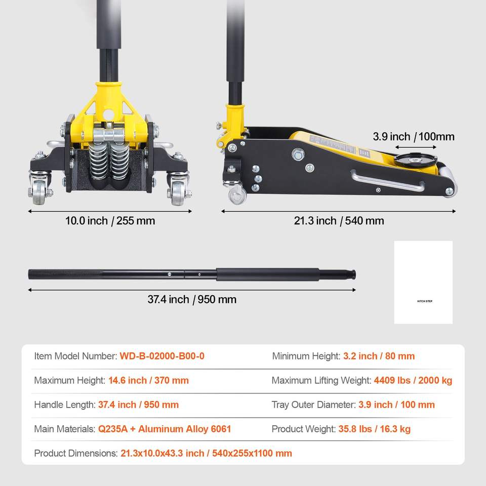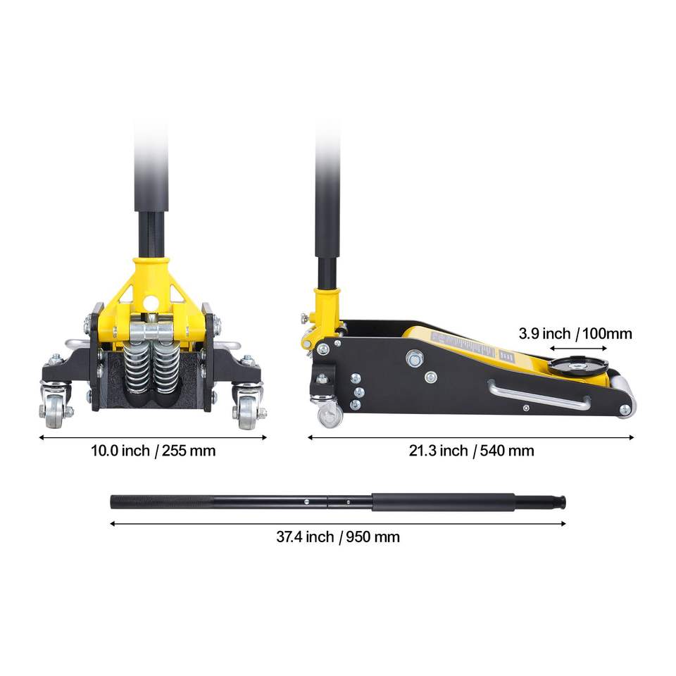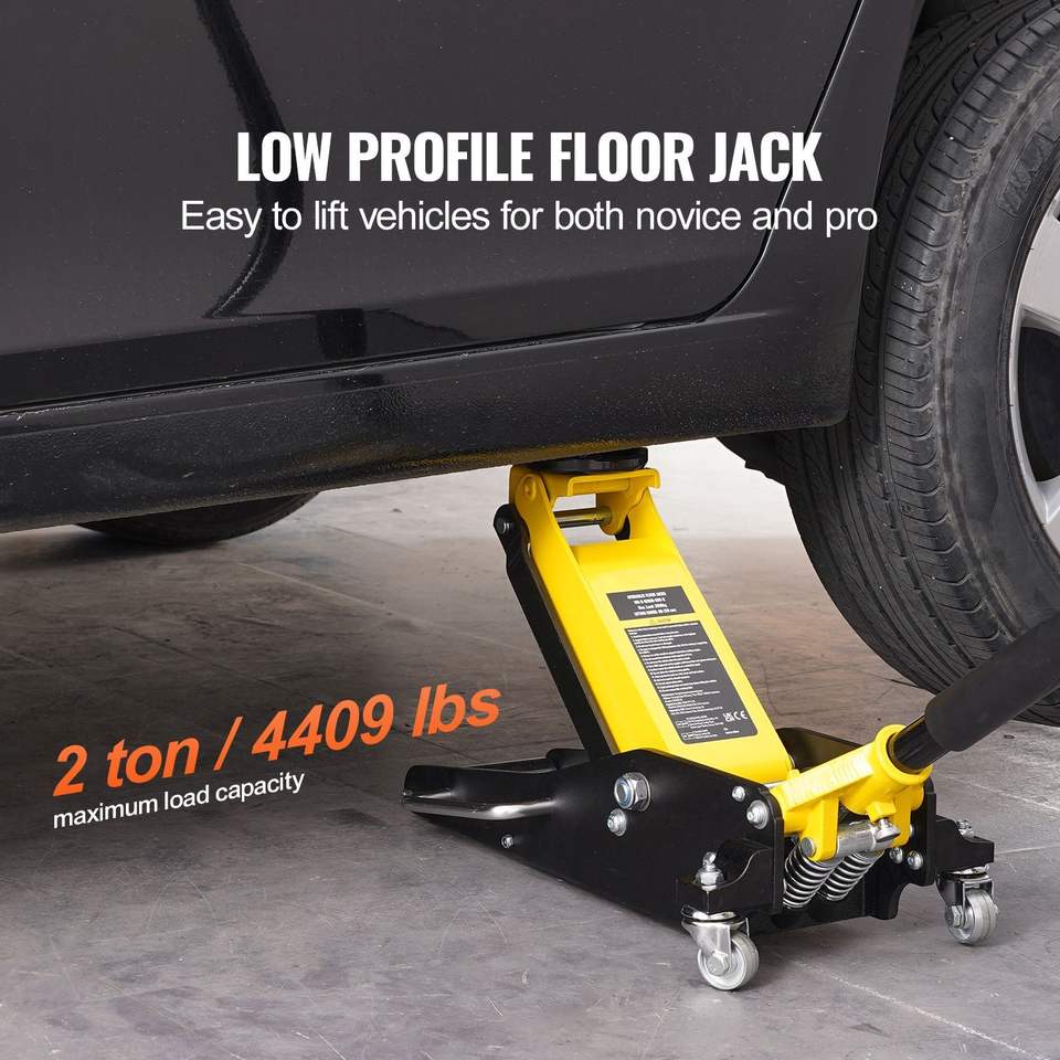 Martinetto idraulico da corsa in alluminio per impieghi gravosi da 2 tonnellate (4400 libbre) a basso profilo con sollevamento rapido a doppio pistone