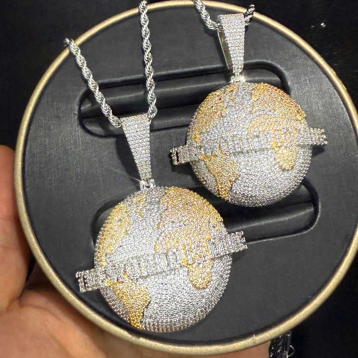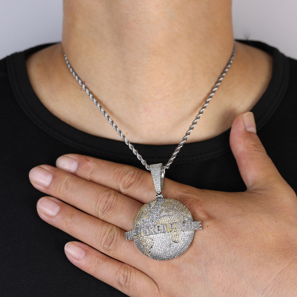 2 Tone terra rotonda mostra lettera il mondo è mio ciondolo da uomo collana Hip Hop piena Bling Cubic zirconi CZ gioielli di moda