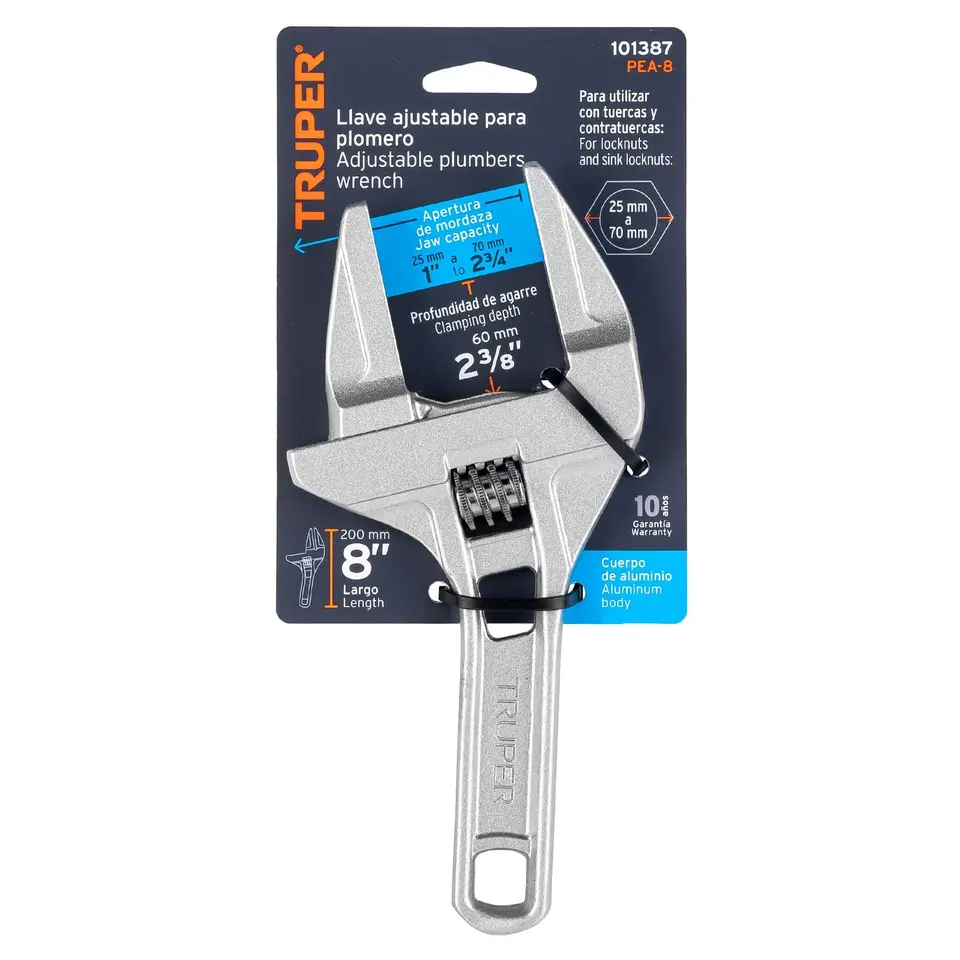 2 Unidades De Llave Ajustable 8' Para Plomero Apertura 3' Truper Caja De Herramientas Wheelbarrows