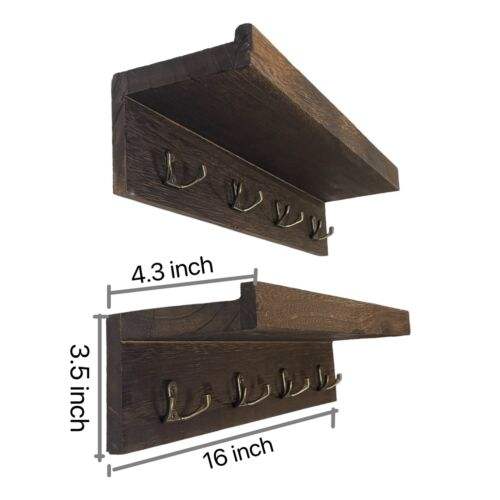2 Pezzi Mensola da Parete in Legno con Gancio per Chiavi Supporto per Chiavi Pendenti Montato a Parete