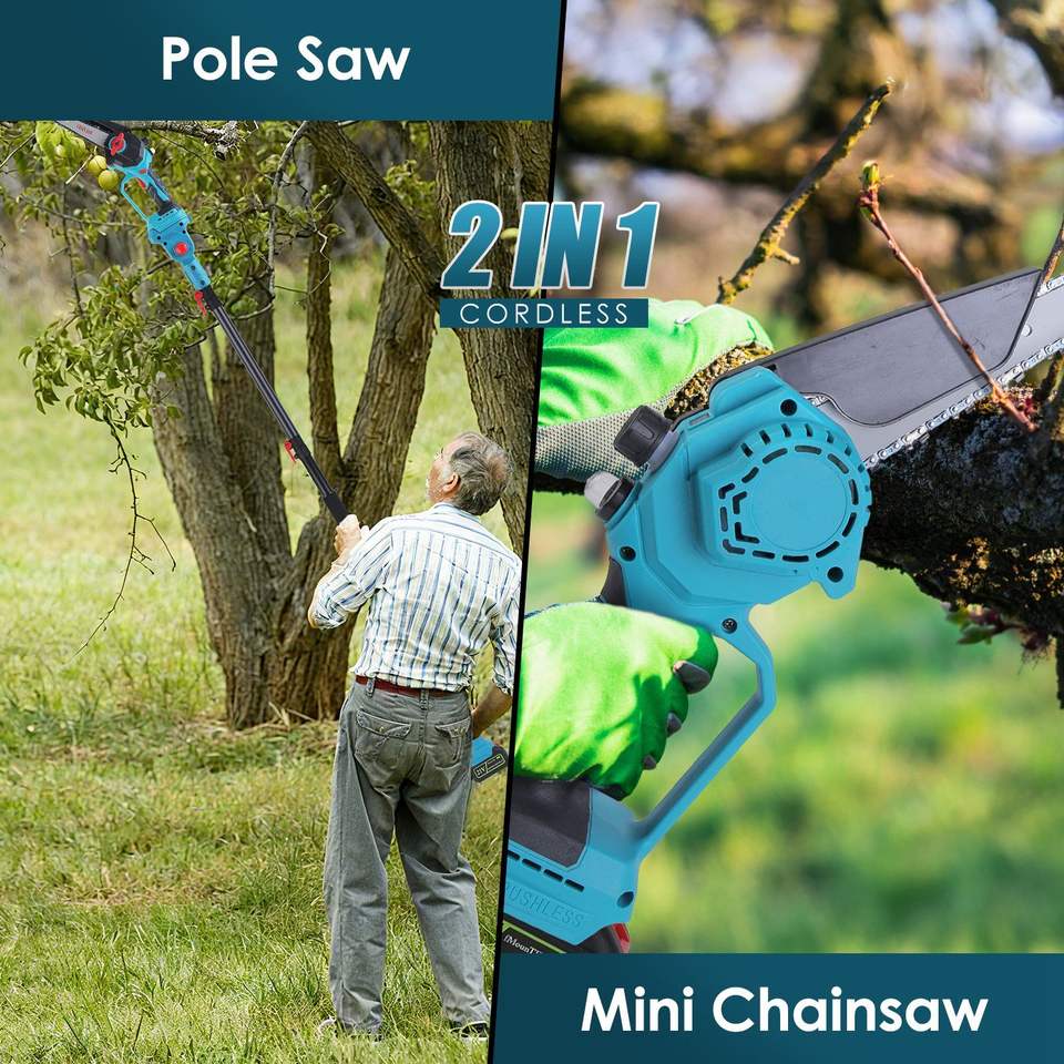 Motosega a Batteria 2-in-1 21V, 6 Pollici, Senza Spazzole, con Asta di Prolunga e Display Digitale per Uso Esterno