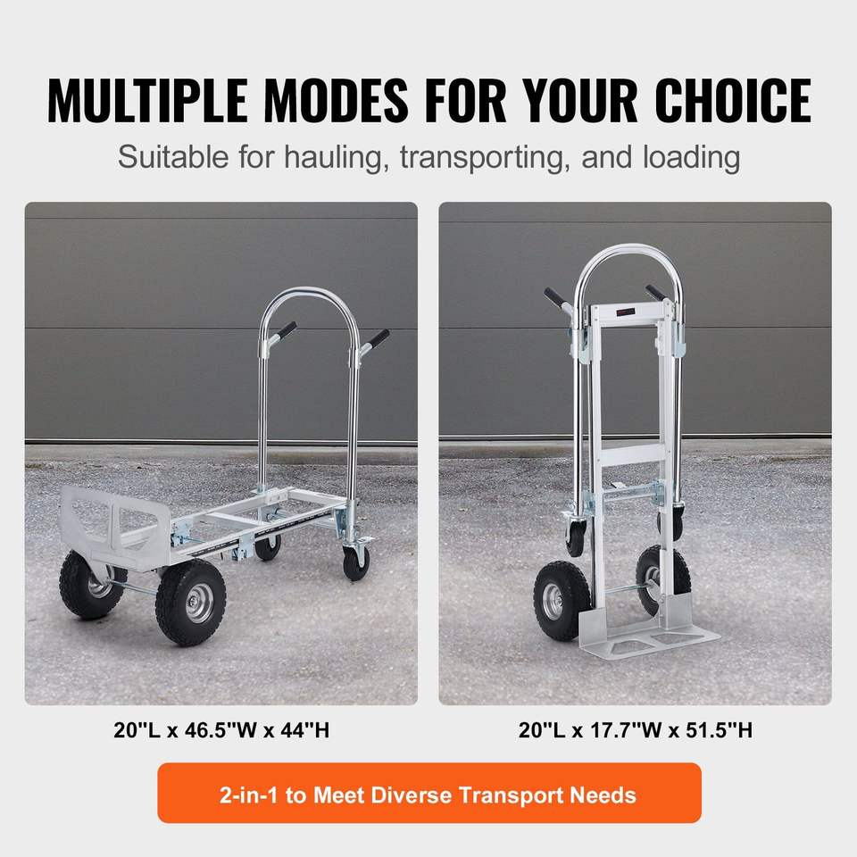 Carrello Pieghevole 2-in-1 in Alluminio, Capacità 450 Kg, Carrello Industriale Resistente con Ruote in Gomma, 100% Fatto a Mano