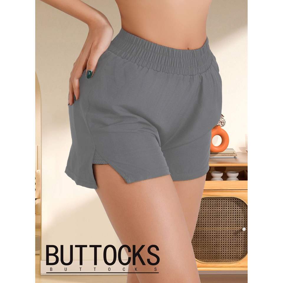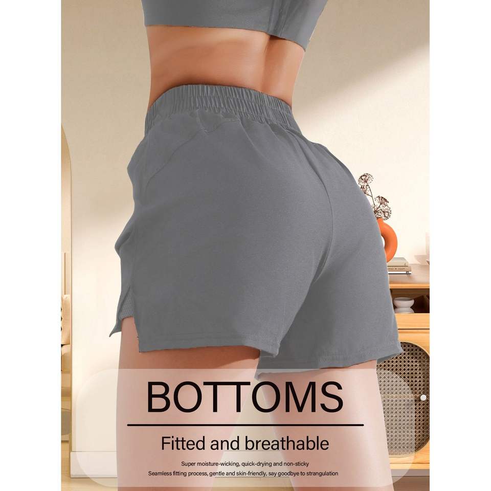 Pantaloncini sportivi 2-in-1 in rete grigia traspirante anti-trasparenza, ideali per l'estate e per lo sport