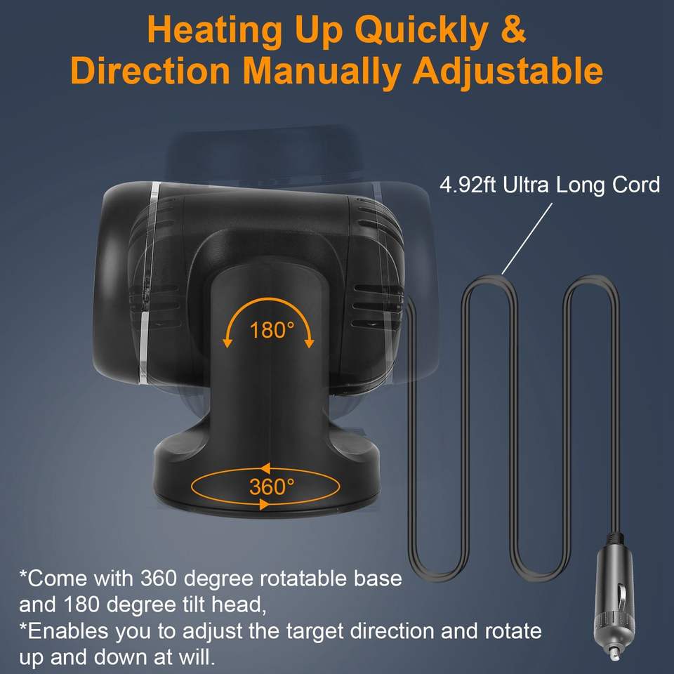 Riscaldatore/Ventilatore per Auto 2-in-1 con Cavo da 1,5m, Sbrinatore e Sappiatore d'Aria Orientabile
