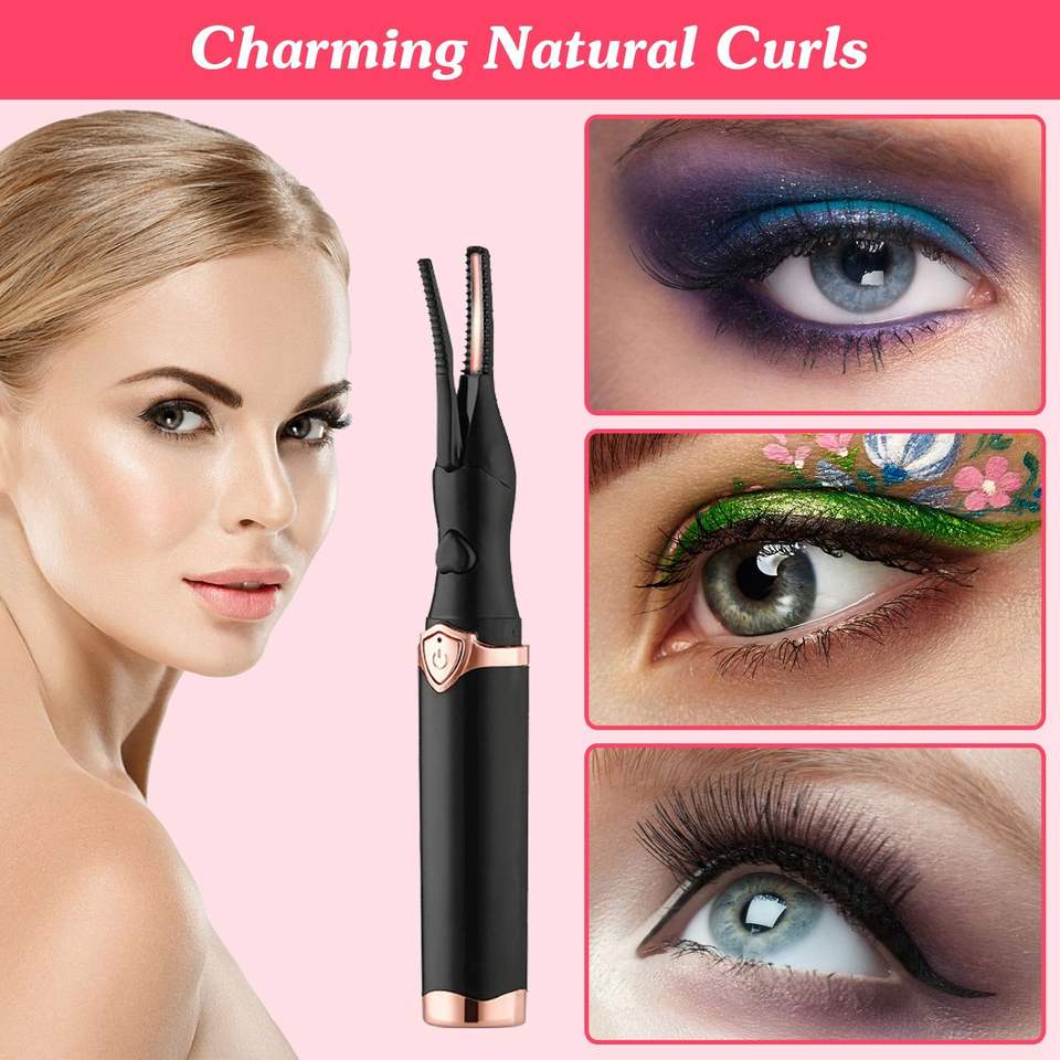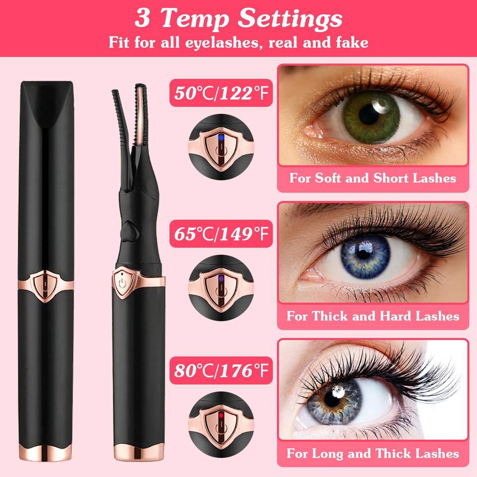 Piastra per Ciglia Elettrica 2-in-1 con Pettine, Mini Arricciaciglia Riscaldato per un Effetto Naturale, Strumento per il Trucco delle Ciglia con 3 Impostazioni di Temperatura e Spegnimento Automatico in 15 Minuti