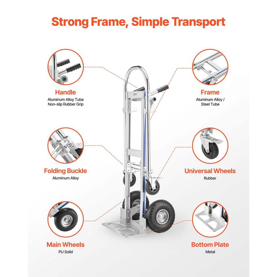 Carrello Convertibile 2-in-1 con Capacità di Carico di 450 Kg, Maniglia Antiscivolo e Ruote per Modalità a 4 Ruote, Carrello Portatile a 4 Ruote