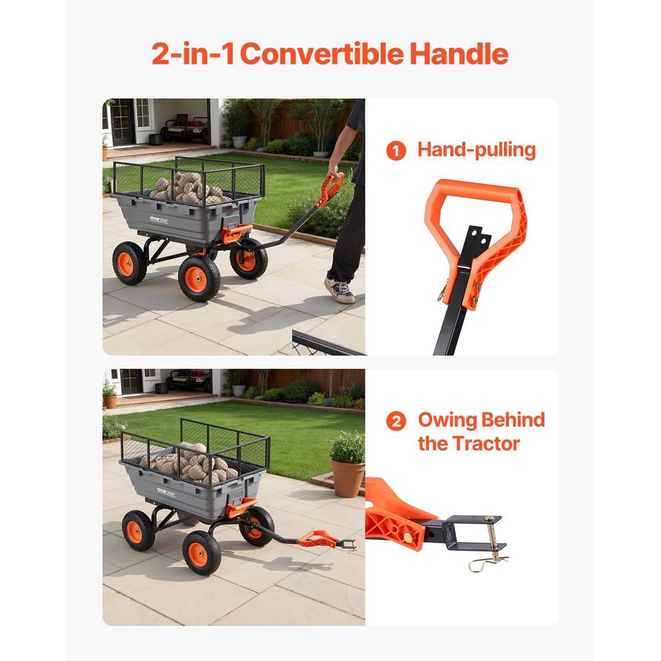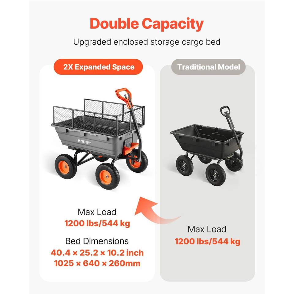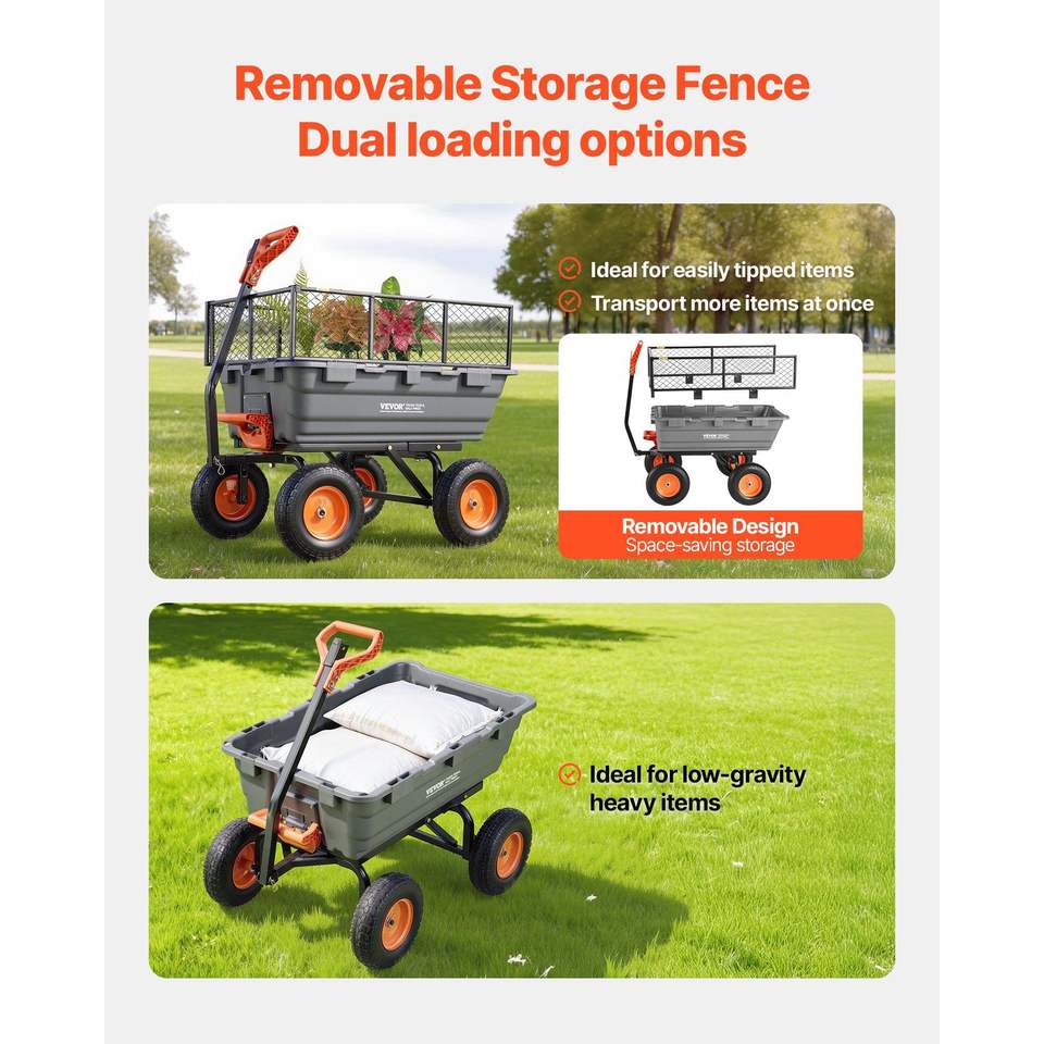 Carrello da Giardino Convertibile 2-in-1 con Manico Girevole a 90 Gradi e Recinzione Portaoggetti, Capacità 1200 Libbre, Carrello Multiuso in Polietilene