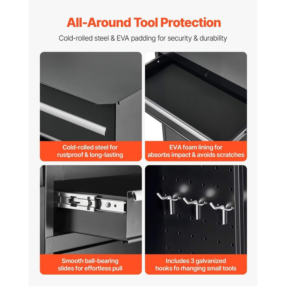 Cassetta degli Attrezzi Mobile 2-in-1 con 5 Cassetti, Parte Superiore Staccabile, Barra di Bloccaggio e Organizer Protettivo