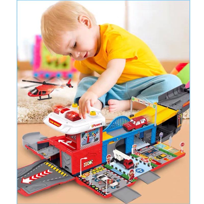 2 in 1 diecast model children deformation car fir fighting truck parcheggio lega fai da te garage fire station giocattolo per bambini bambino