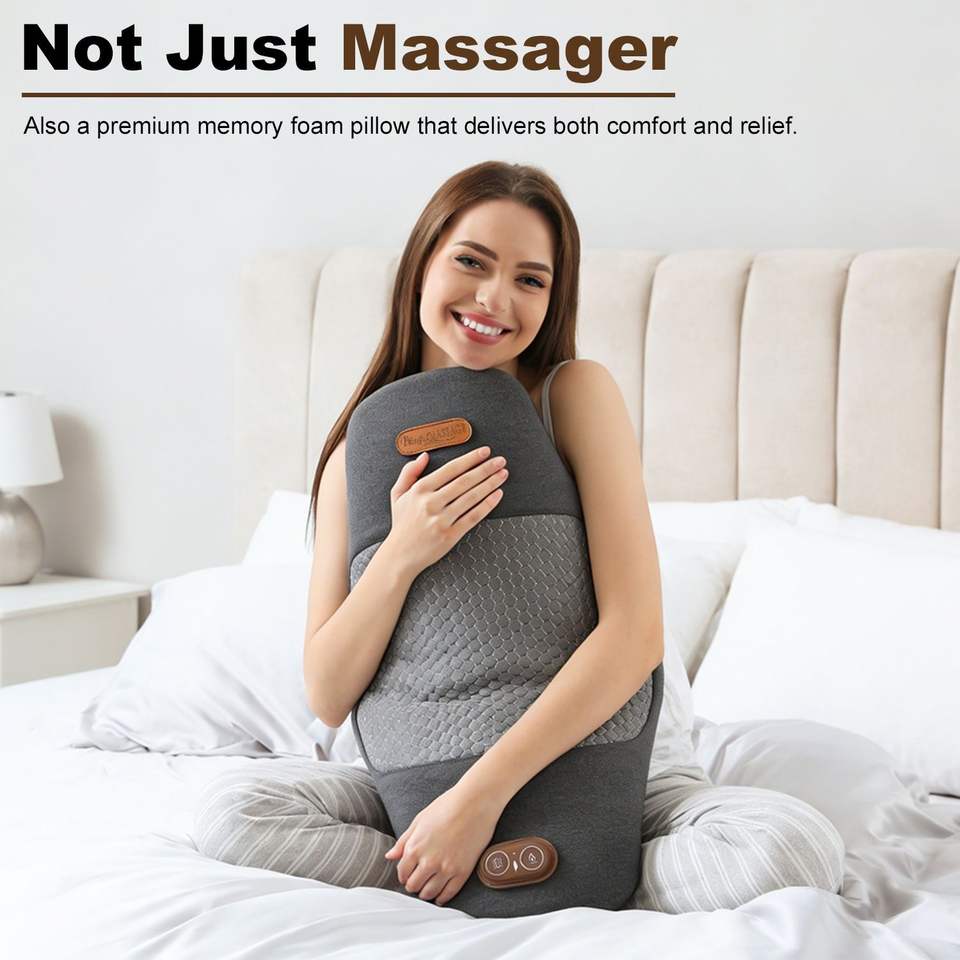 2-in-1 Electric Lumbar Massager Support Pillow with Memory Foam Lower Back Massager Heat & Vibration Adapter for Pain Relief