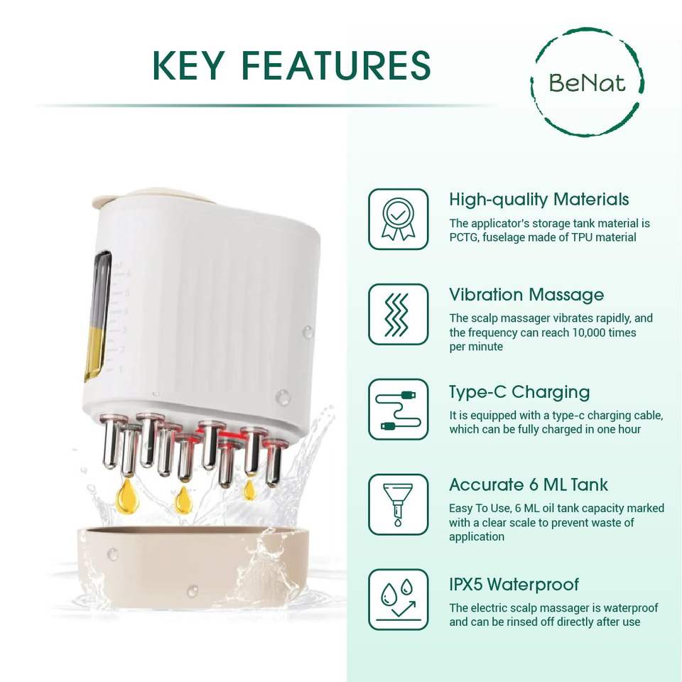 Applicatore di Olio Elettrico 2 in 1 con Massaggiatore per Cuoio Capelluto e Testa
