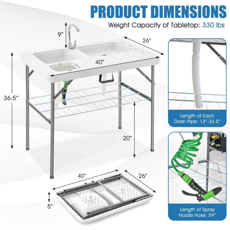 Tavolo Pieghevole 2-in-1 per Pulizia del Pesce
