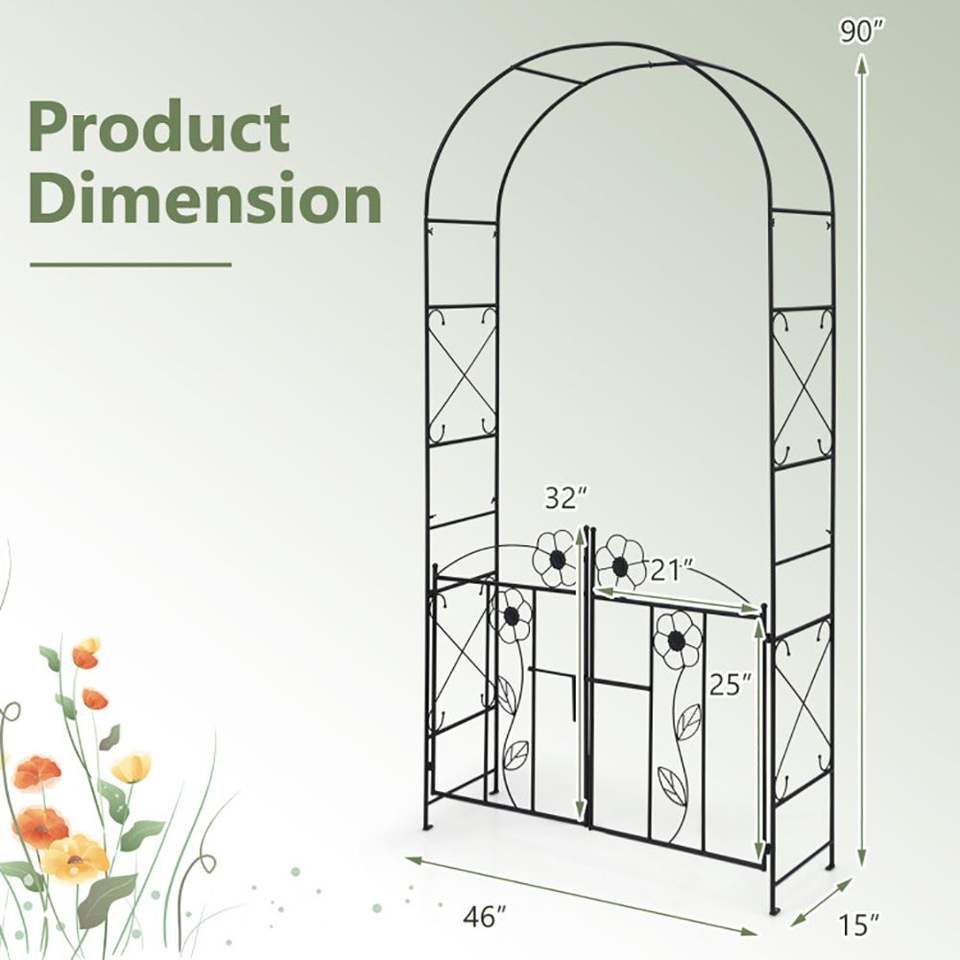 Arco da Giardino 2-in-1 con Porta e Chiusura, Recinzione per Prato Esterno, Traliccio e Cancello