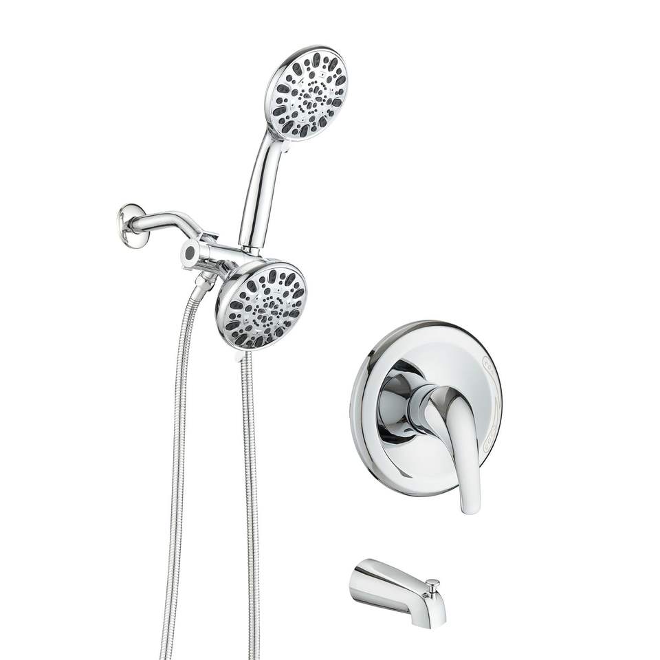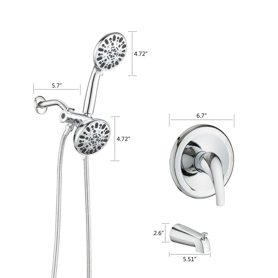 Sistema Doccia 2 in 1 ad Alta Pressione con Doccia a Pioggia e Rubinetto Vasca Combinato con Valvola, Set Bagno con Bocchetta Vasca