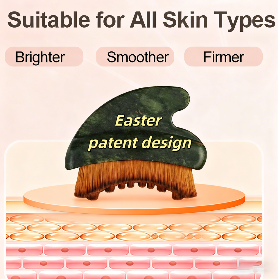 Pettine Gua Sha in Giada 2-in-1 e Spazzola per Modellare il Viso, Definire Mascella e Mento e Drenaggio Linfatico