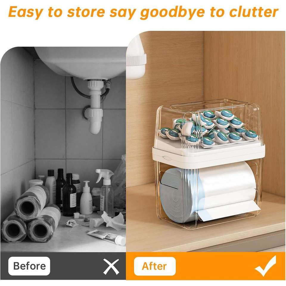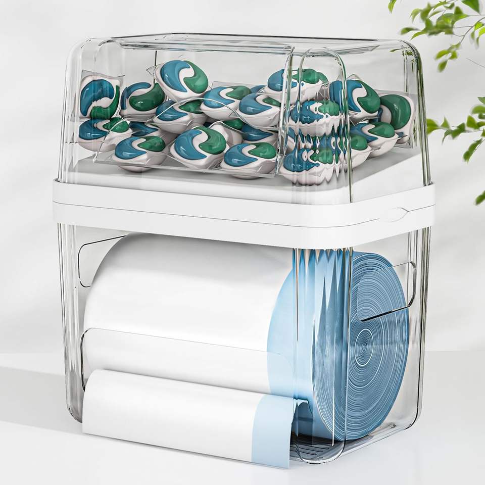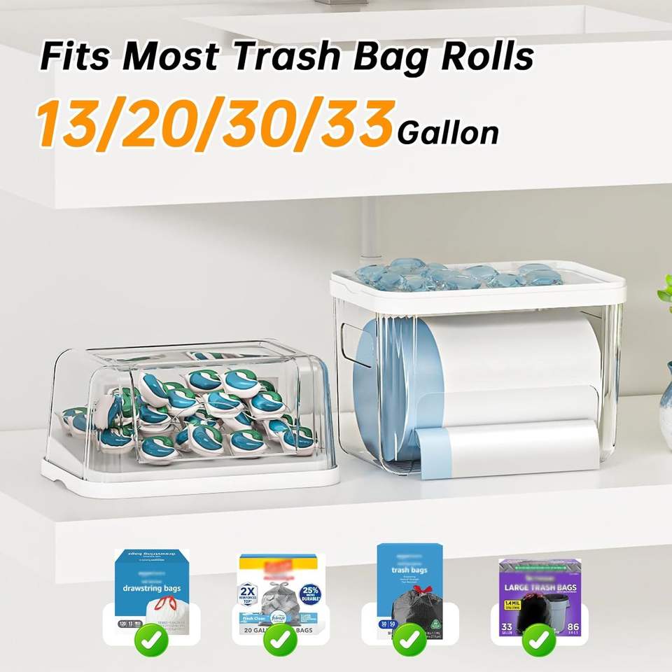 2-in-1 Kitchen Organizer Trash Bag Holder with Removable Lids Laundry Dishwasher Pods Container Garbage Bag Dispenser