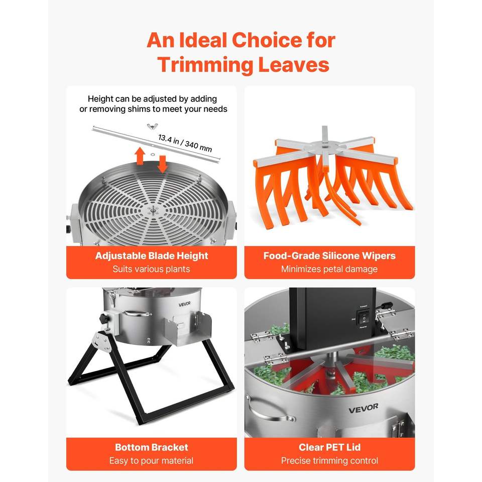 Trimmer Elettrico Manuale 2-in-1 per Foglie e Germogli, Lame Affilate in Acciaio Inox da 16 Pollici, Tipo Umido/Secco, Attrezzo da Giardino con Supporto