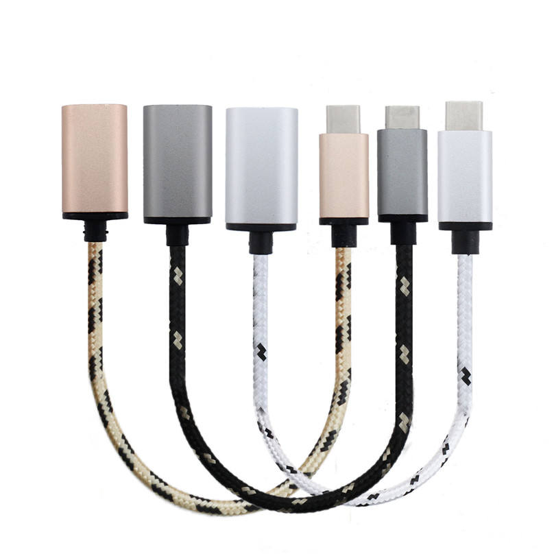 2 in 1 Metal Braided Micro USB Type C Type-C 3.1 Male to USB 3.0 2.0 Female Adapter USB C OTG Data Sync Connector Cable Cord