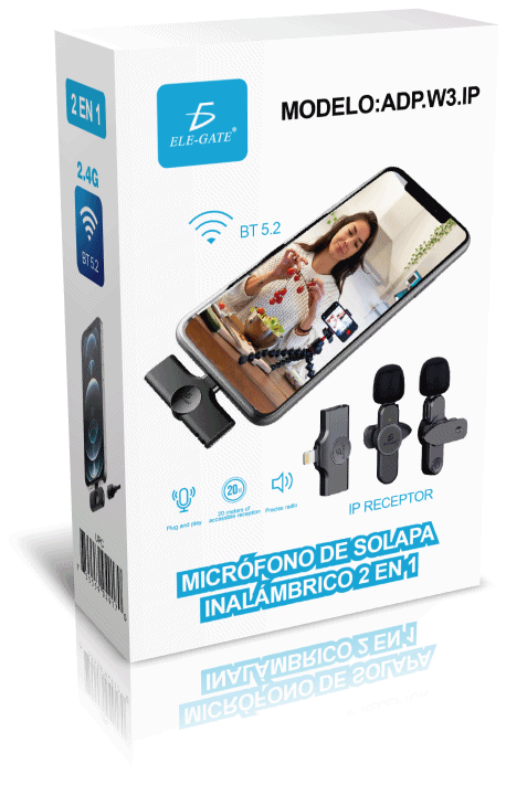 ELE-GATE ADP.W3.IP Microfono Lavalier Wireless Portatile 2-in-1 per iPhone e iPad, Attrezzatura per Streaming dal Vivo