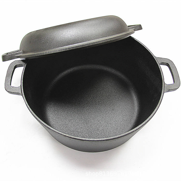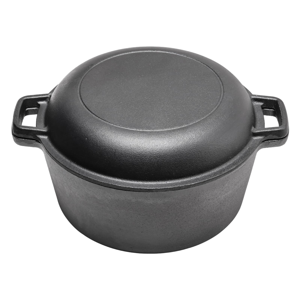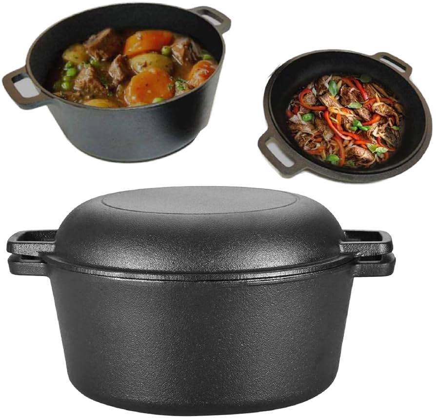 Pentola Olandese in Ghisa Pre-Stagionata 2 in 1 con Coperchio Padella, Utensile da Cucina per Pane, Frittura, Cottura al Forno, Campeggio 5QT