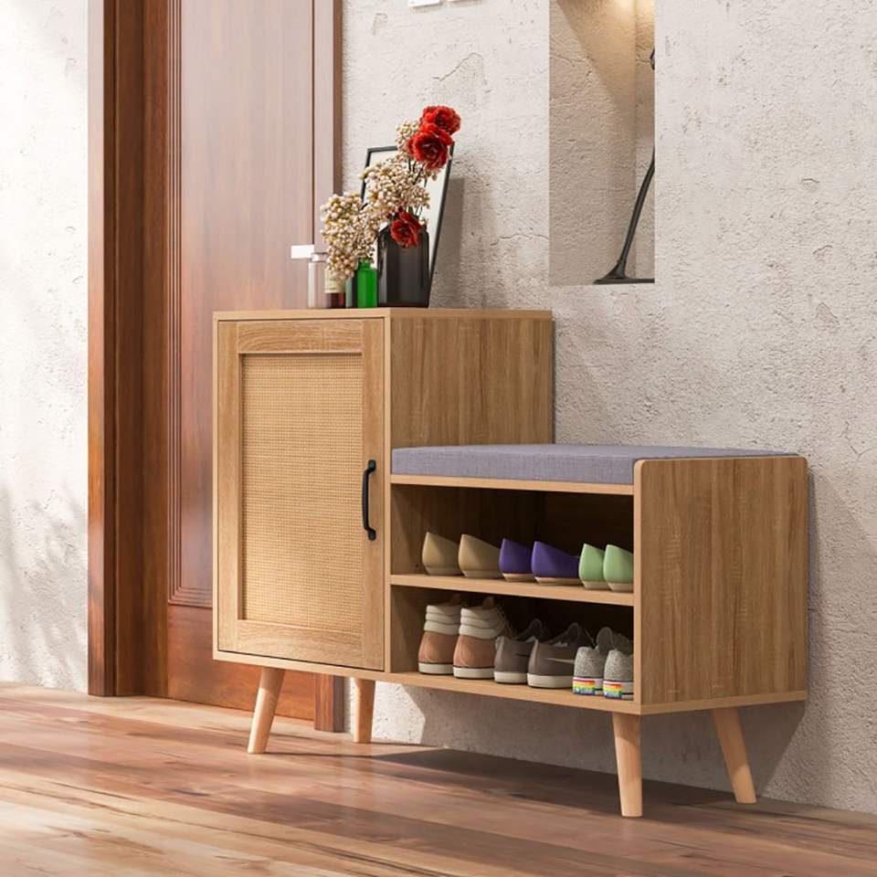 Scarpiera 2-in-1 in Rattan con Cuscino Lavabile e Panchina Portaoggetti Integrata