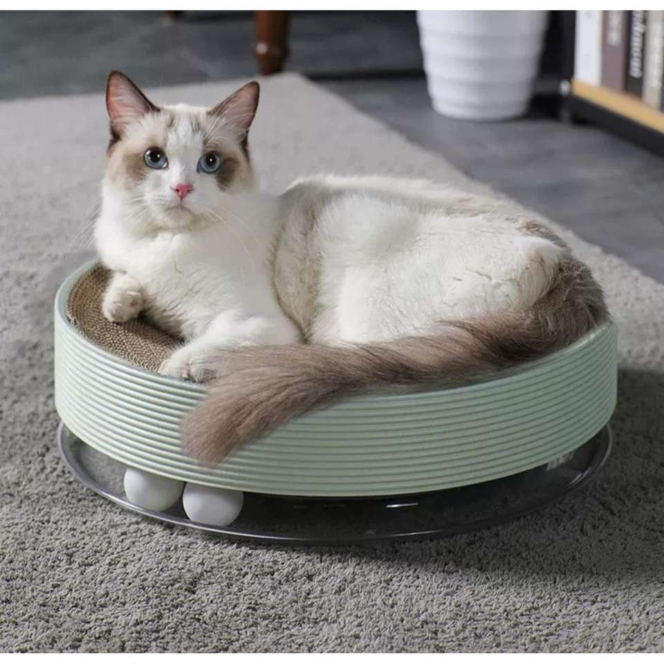2 in 1 Round Cat Scratcher Bed and Toy Durable Corrugated Cardboard Residue-Free 2 Styles and 2 Colors