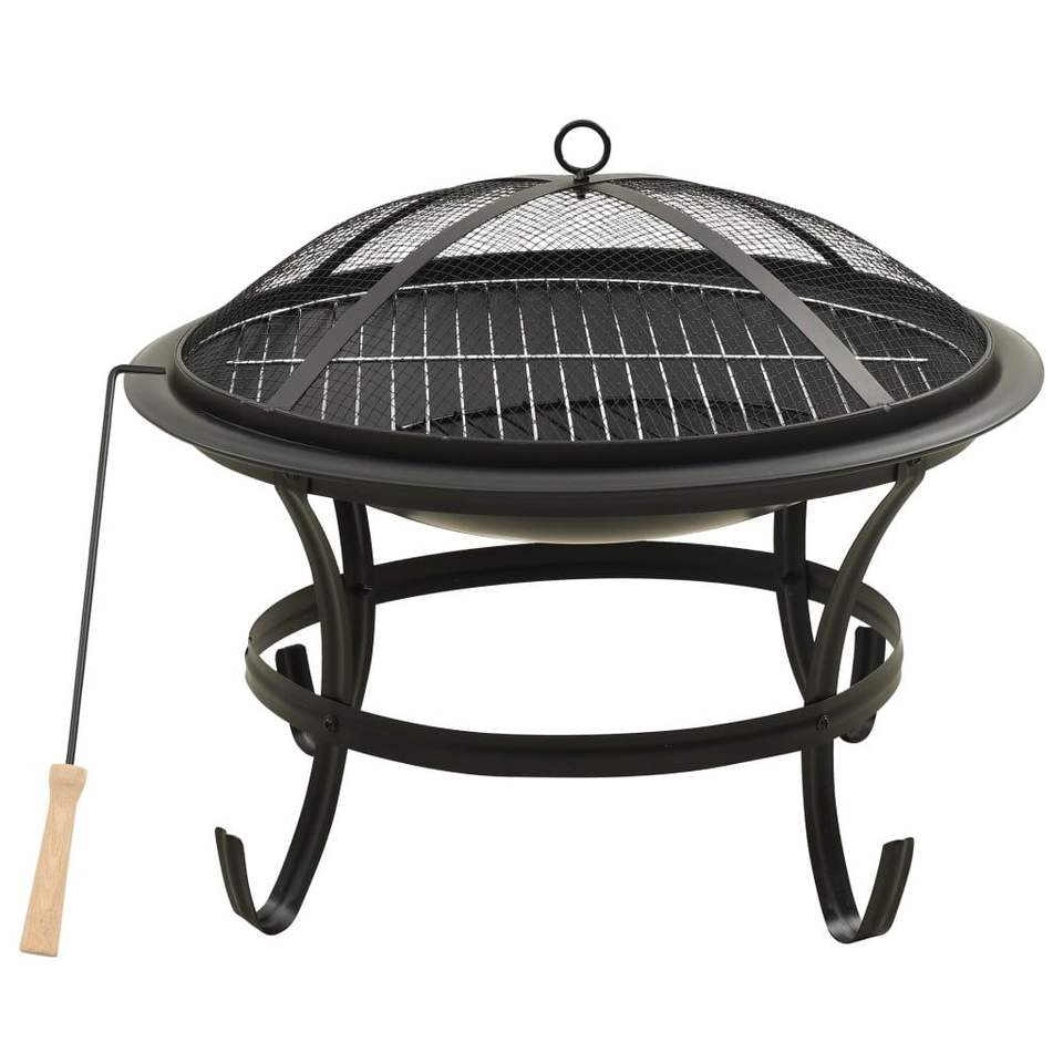 Braciere e Barbecue 2-in-1 in Acciaio con Paletta 22"x22"x19.3"-Griglia e Focolare da Esterno Resistente