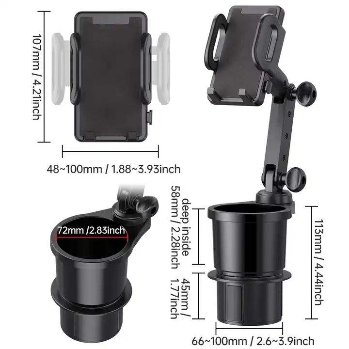 Supporto Universale 2 in 1 per Telefono da Auto, Supporto per Cellulare Multifunzionale con Rotazione a 360° per Portabicchieri
