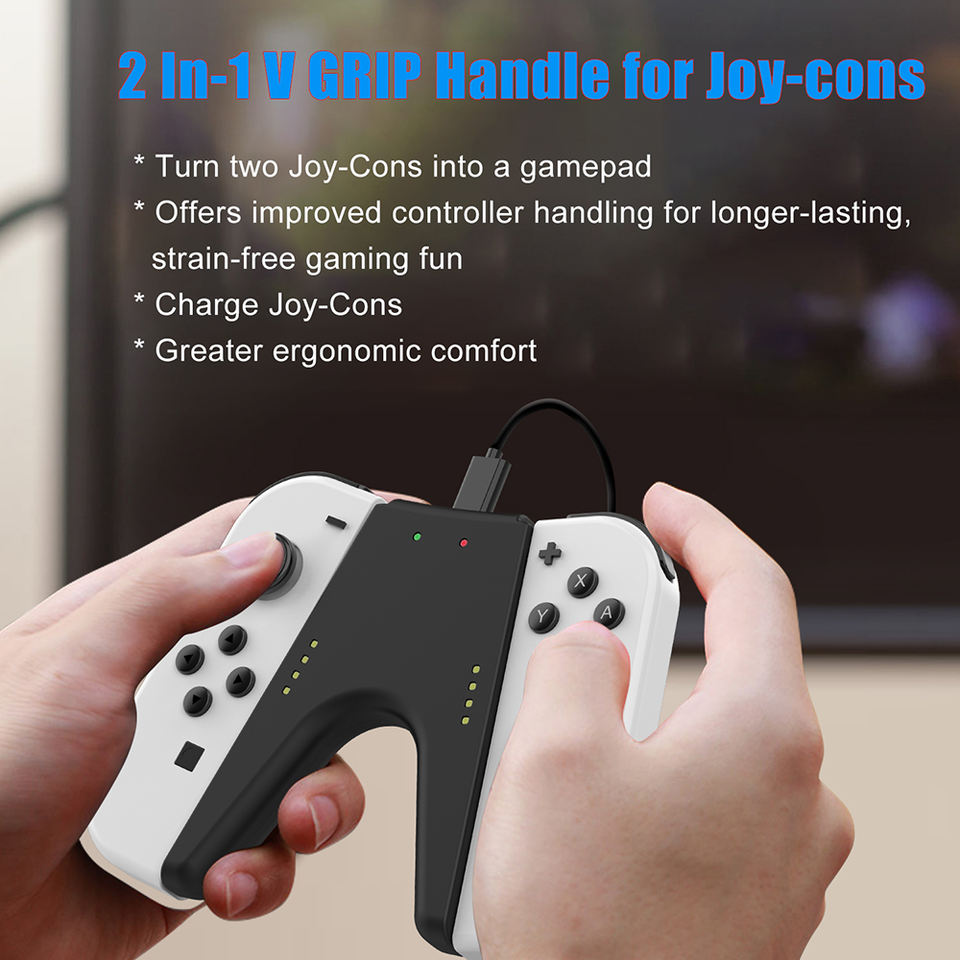 2 in 1 V a forma di ricarica impugnatura a mano supporto Joycon supporto per Nintendo Switch / Switch OLED Joy-Con staffa