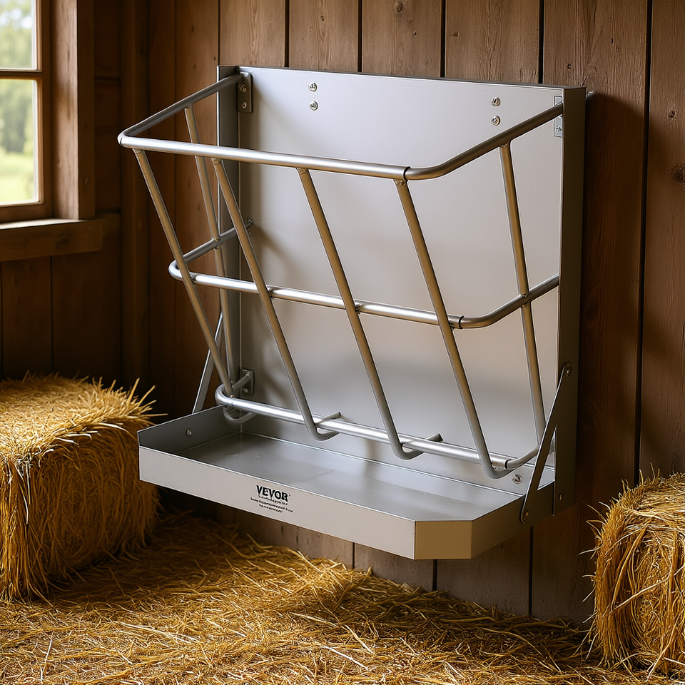 Wall Mounted Goat Hay And Grain Feeder 21.5x13.1x23.6 In Stainless Steel For Barn Use