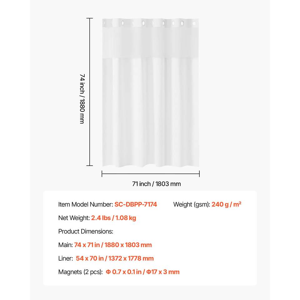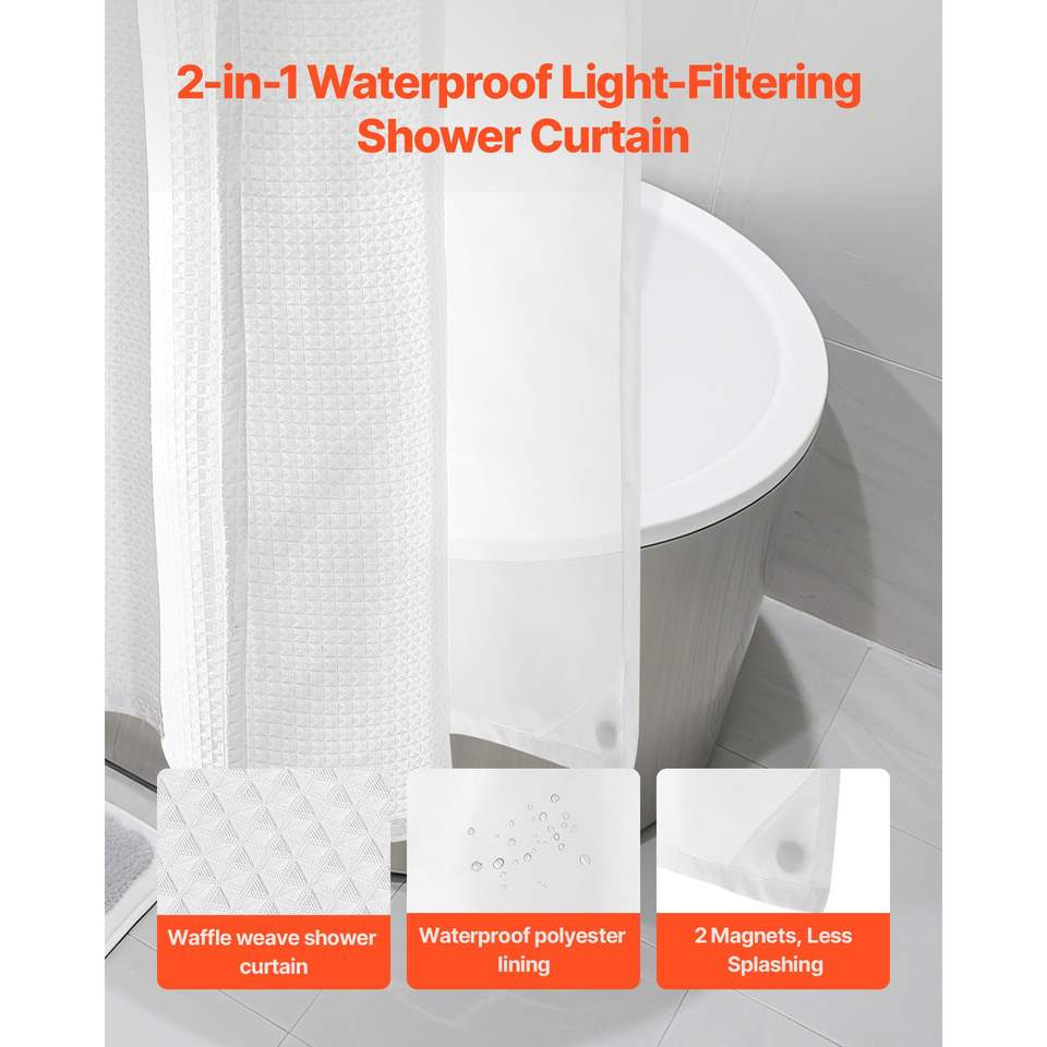 Tende da Doccia 2-in-1 Impermeabili in Tessuto Waffle 240 GSM con Fodera a Incastro e Finestra Trasparente Senza Ganci