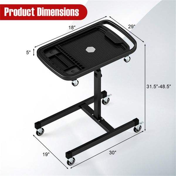 Carrello da Lavoro 2-in-1 con 4 Ruote e Vassoio Portaoggetti