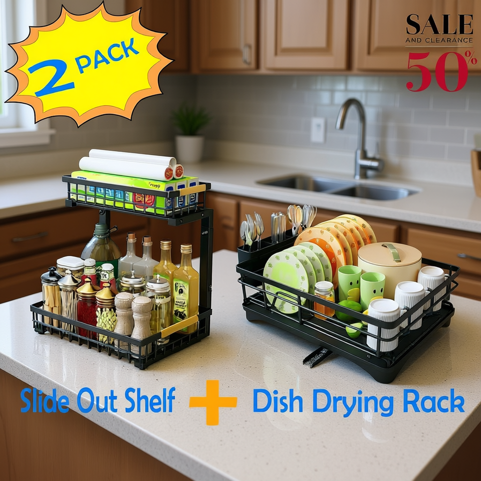 2 Pack Dish Drying Rack With Slide Out Shelf Kitchen Storage Organizer 2 Tier Minimalist Design For Sink Area