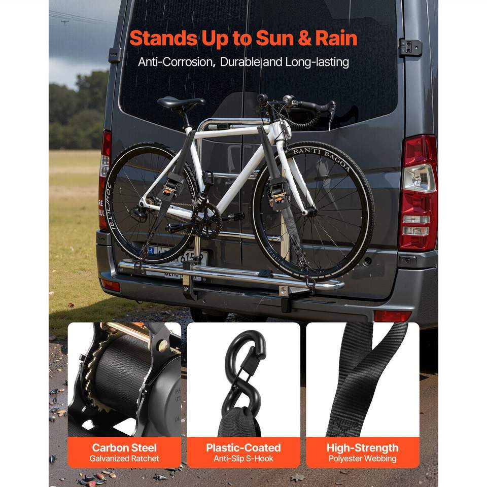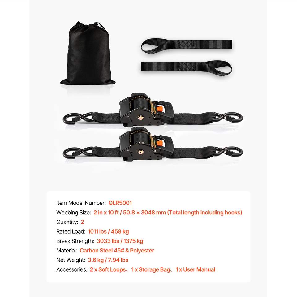 Cinghie a cricchetto retrattili da 2 pollici x 10 piedi con resistenza alla rottura di 3033 libbre, 2 anelli morbidi e ganci a S per il fissaggio con cricchetto