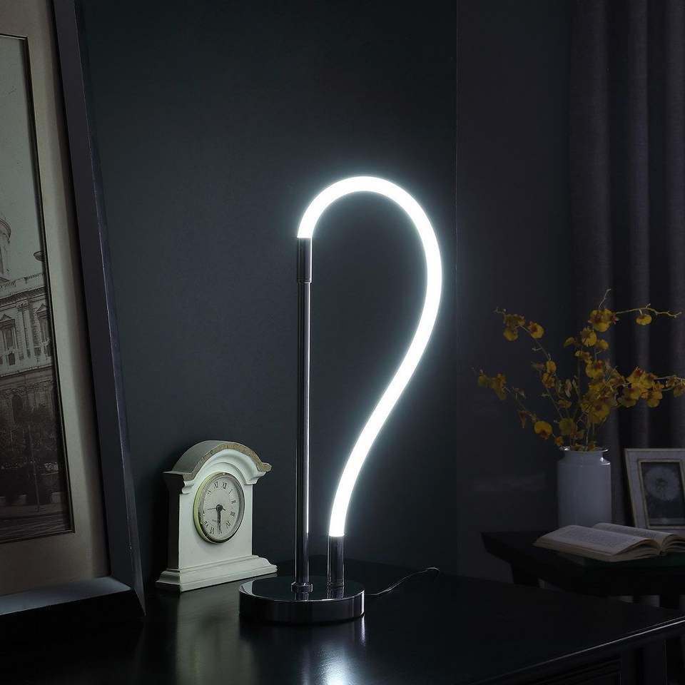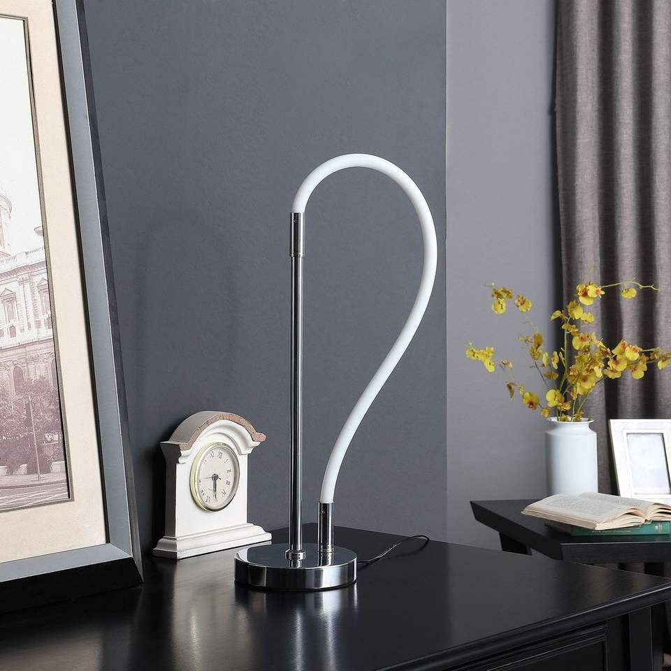 Lampada da tavolo a tubo LED Elastilight da 20,25 pollici con estremità magnetica, lampada da scrivania contemporanea in cromo argento