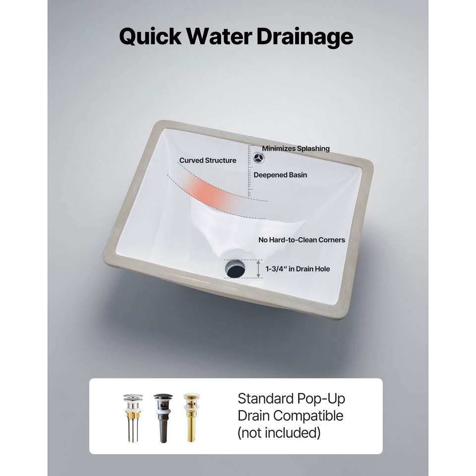 Lavabo Rettangolare in Ceramica Bianca da Incasso 20.28 X 15.16 Pollici con Foro per Troppopieno, Montaggio a Incasso nel Piano