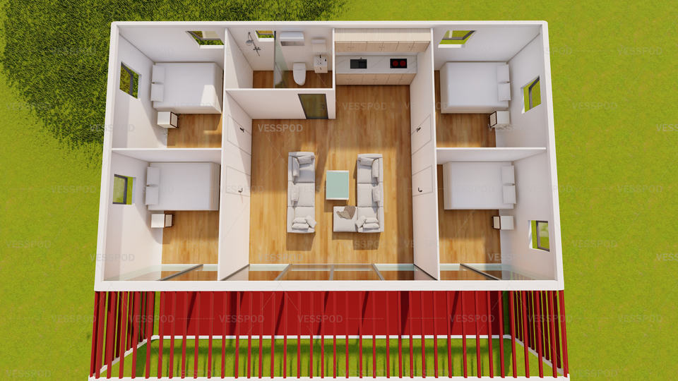 20/40ft cabina di mela prefabbricata struttura in acciaio 4 camere da letto Casa chiosco per Villa Casa Muebles Para La Casa