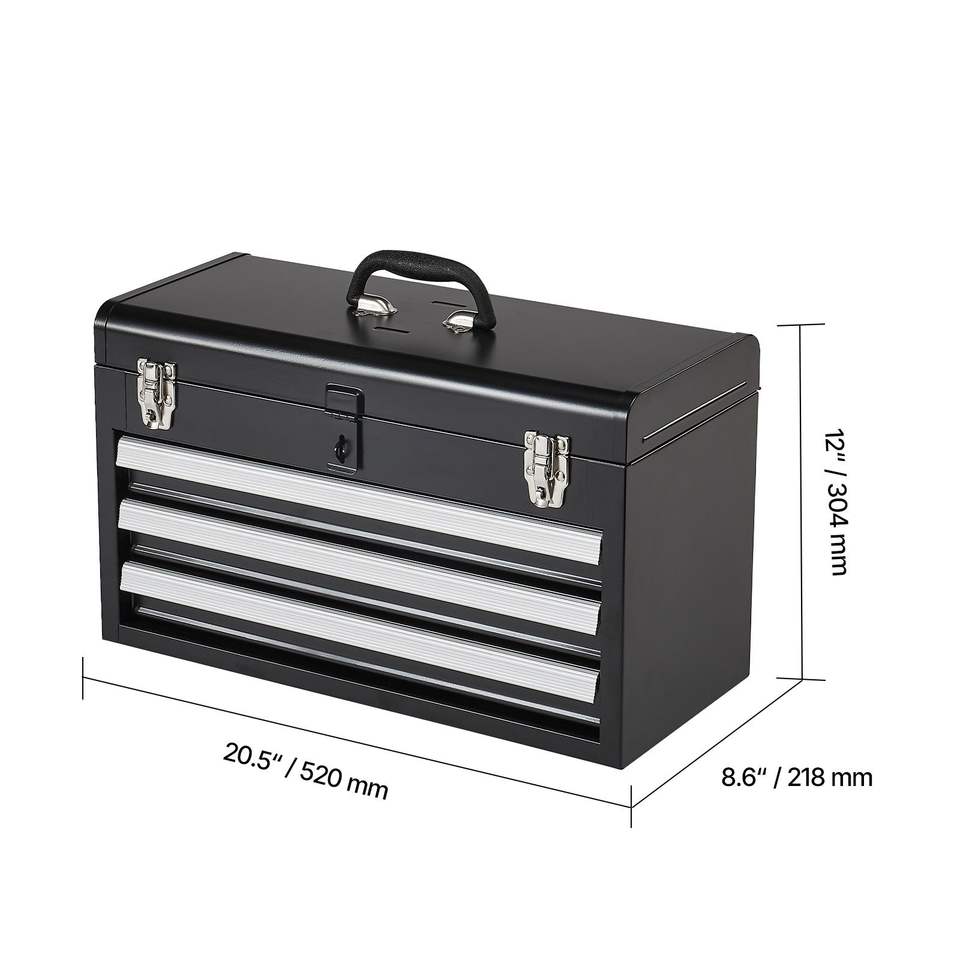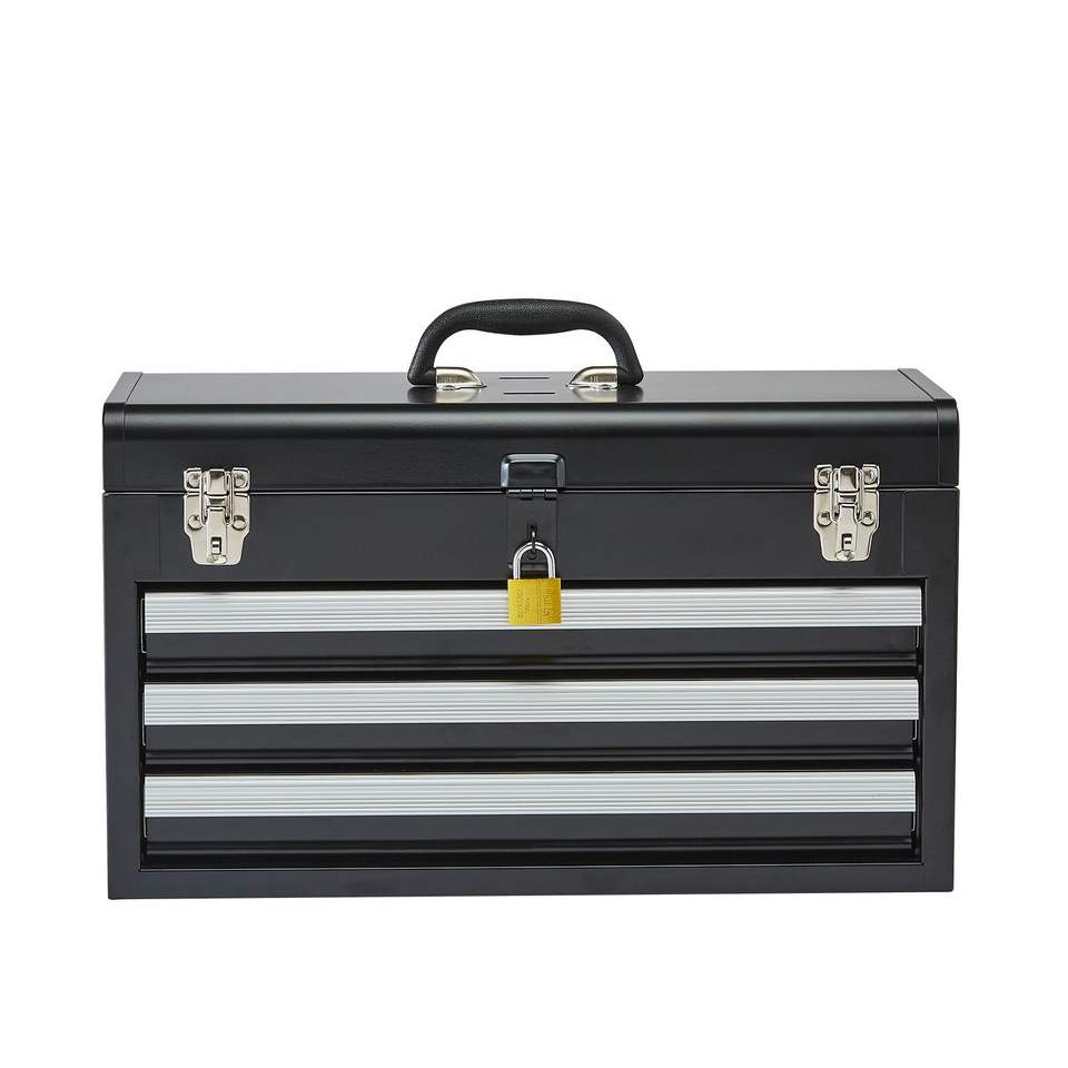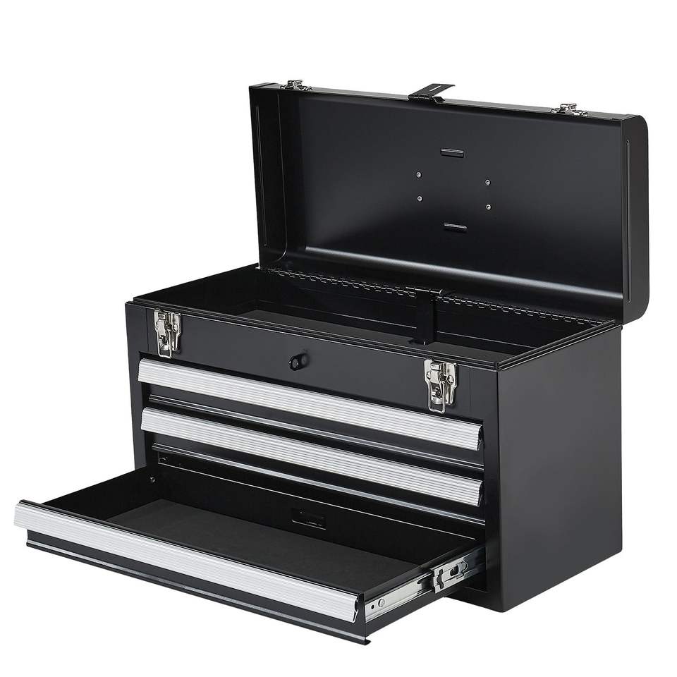 Cassetta degli Attrezzi Portatile in Metallo da 20,5 Pollici con 3 Cassetti Scorrevoli con Cuscinetti a Sfera, Rivestimenti in EVA di Alta Qualità