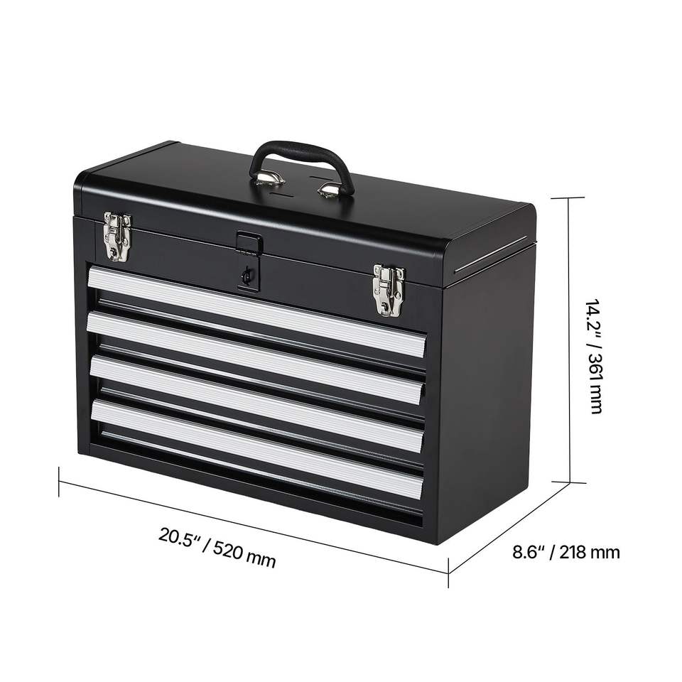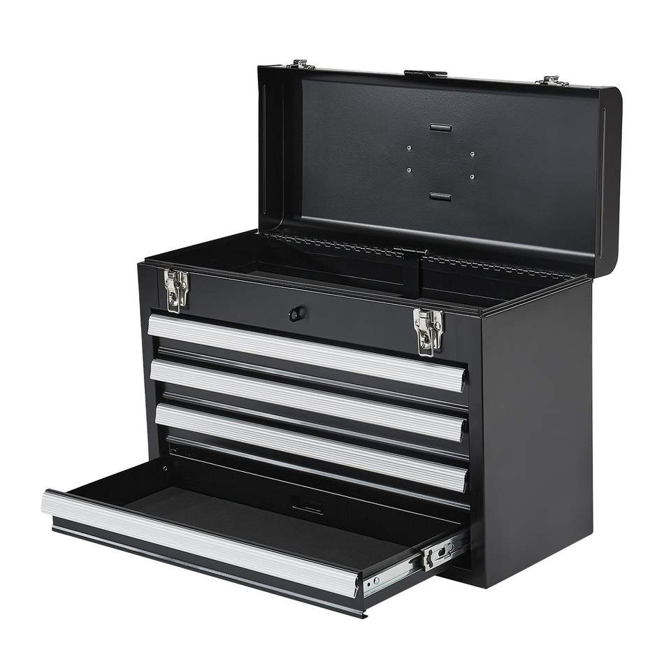 Cassetta degli Attrezzi Portatile in Metallo da 20,5 Pollici con 4 Cassetti Scorrevoli con Cuscinetti a Sfera, Piccolo Contenitore per Attrezzi con Rivestimenti per Organizzazione e Stoccaggio