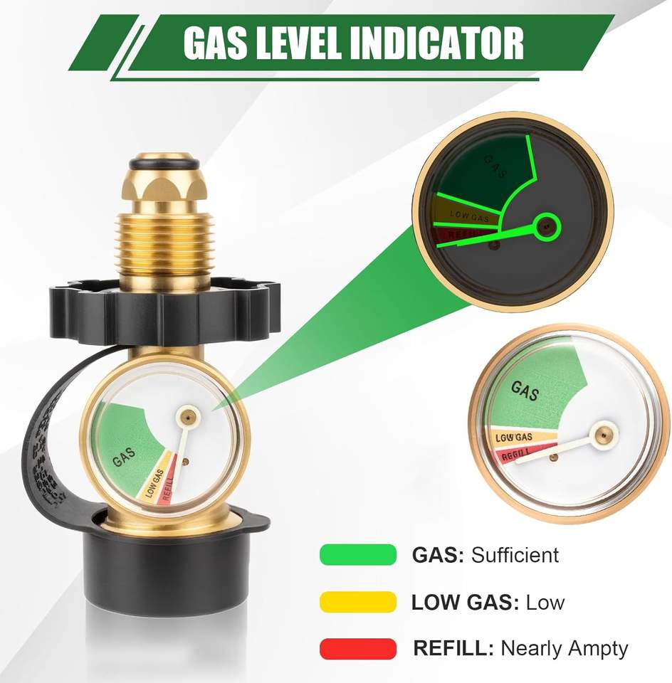 Adattatore in ottone per serbatoio di propano da 20-50 libbre, tipo POL, con manometro, converte la valvola di servizio del serbatoio GPL POL a QCC1 / Tipo 1