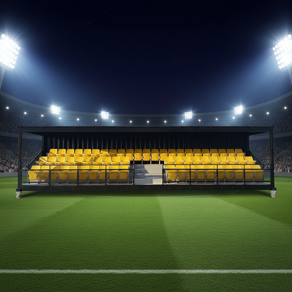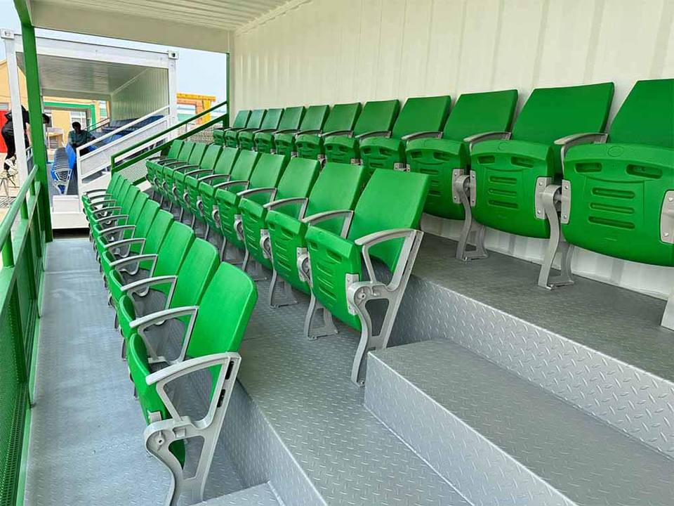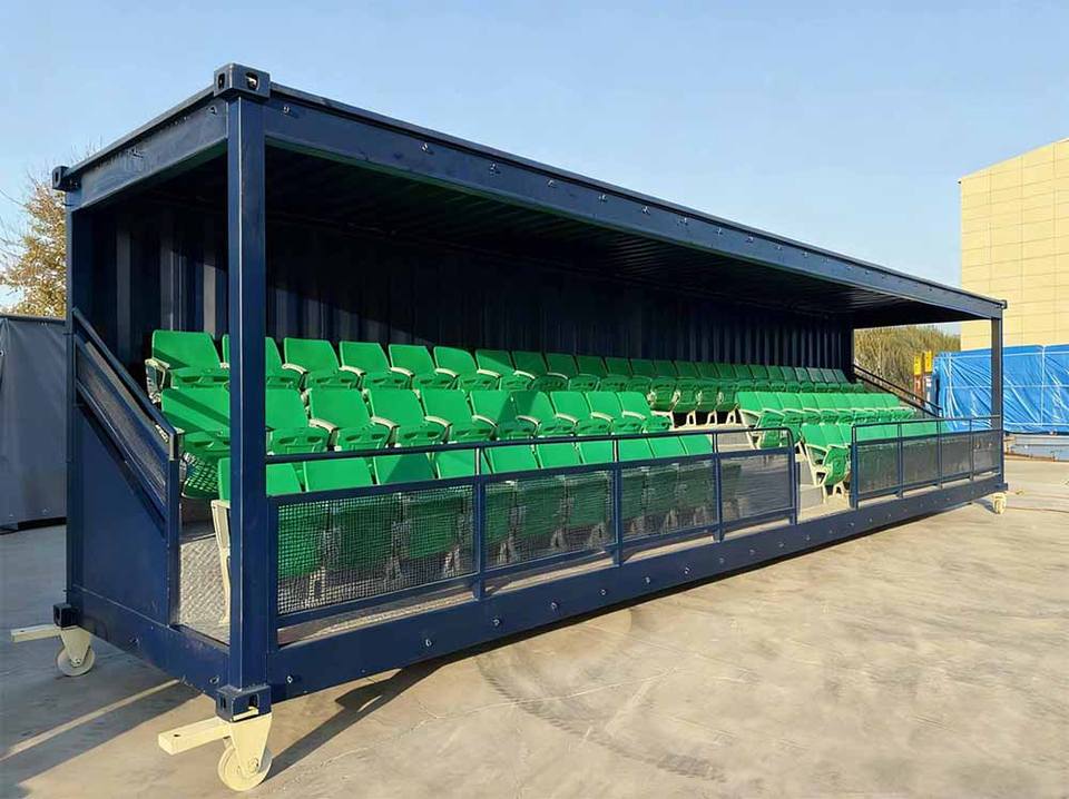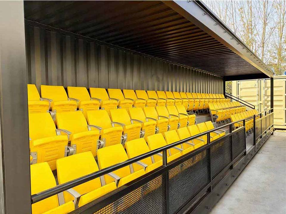 Container da 20 e 40 Piedi con Tribune Pieghevoli per Stadi di Calcio, Pallacanestro e Altri Sport