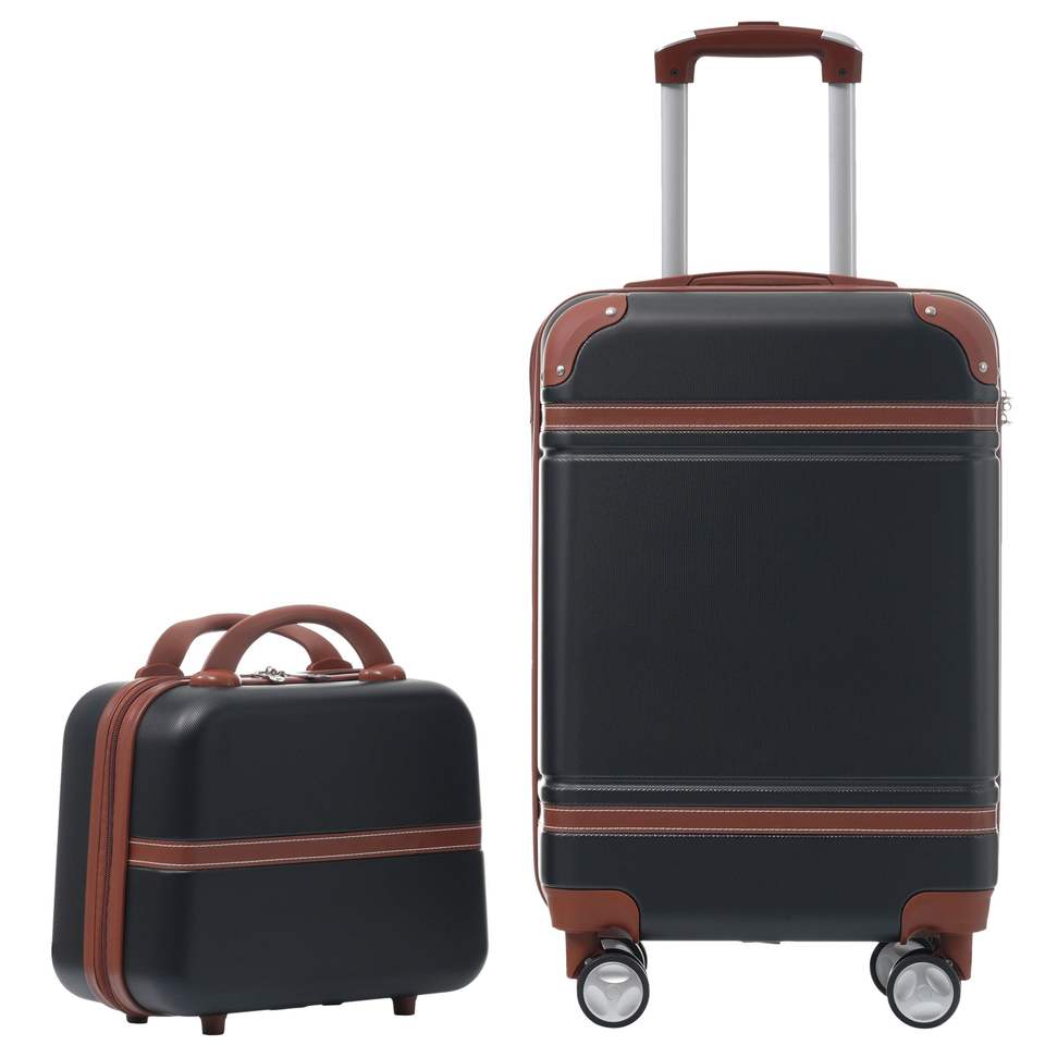 20 IN Hardside Luggage with Cosmetic Case , 2 Piece Lightweight Suitcase Set with Spinner Wheels, Carry on Vintage Luggage,Black