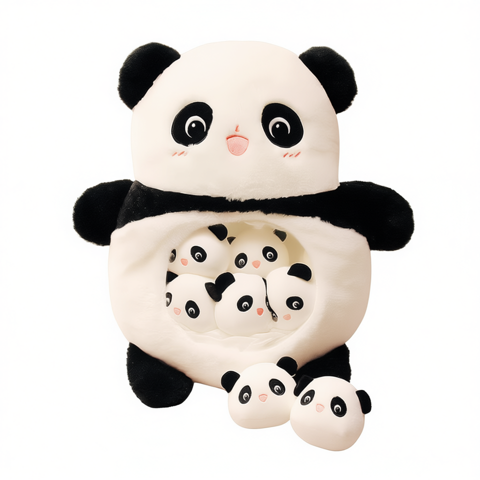 20-Inch Adorable Panda Plush with 6 Babies PP Cotton Filled Cute Toy Animal