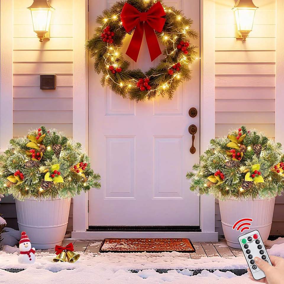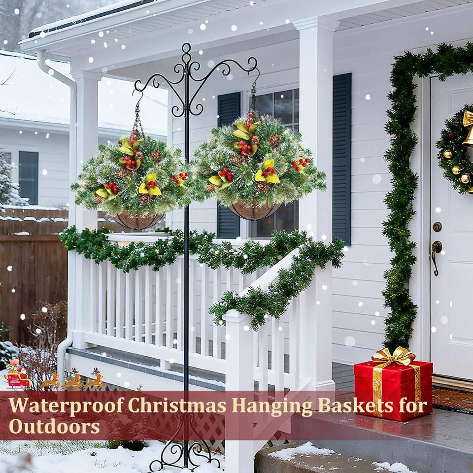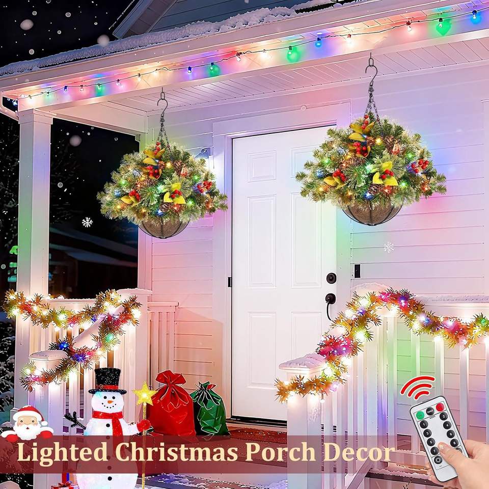 Decorazioni Natalizie a Cesto Sospeso da 20 Pollici, 1 Pezzo con 30 LED Luce Bianca Calda Multicolore, Telecomando, 8 Modalità, Timer